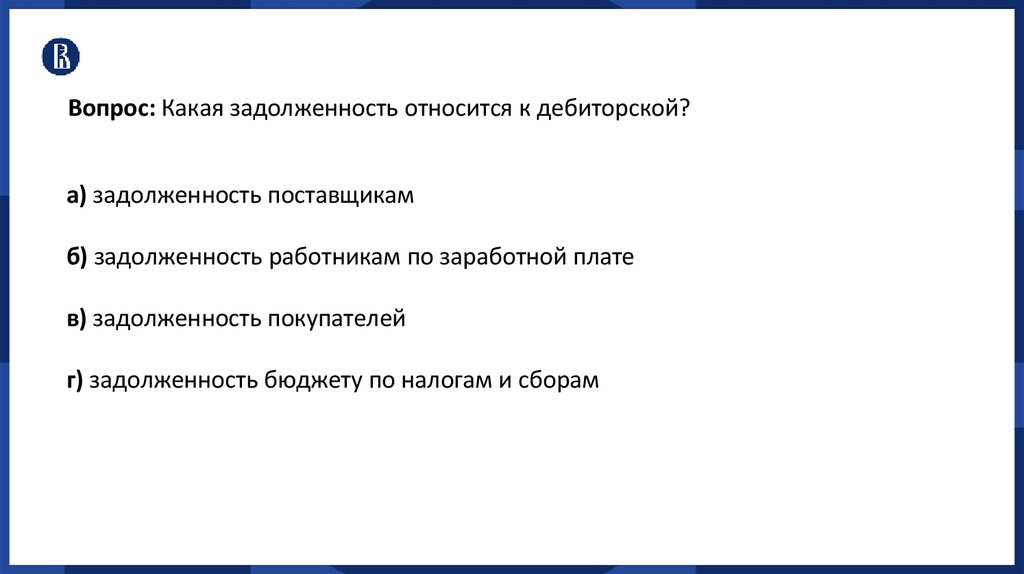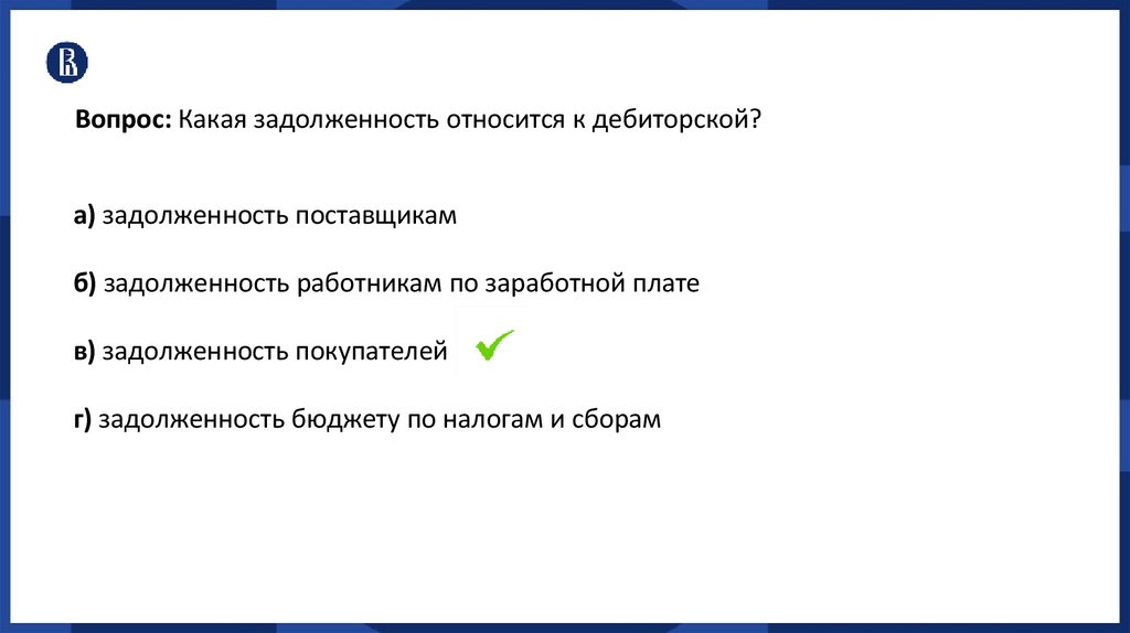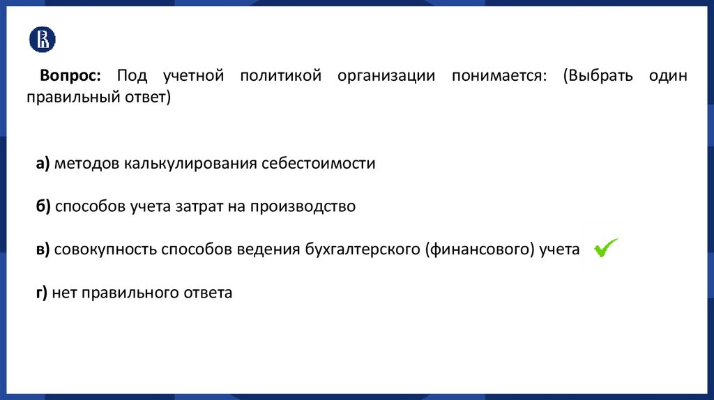 57Вопрос: Под учетной политикой организации понимается: (Выбрать один