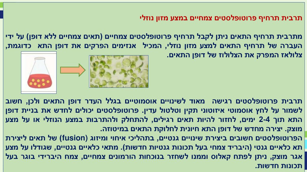 .3תרבית תרחיף פרוטופלסטים – תרבית תאים חסרי דופן במצע נוזלי.