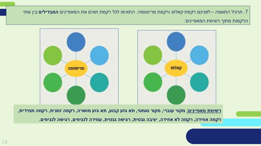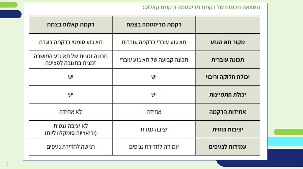 .7תרגיל התאמה – לפניכם רקמת קאלוס ורקמת מריסטמה .התאימו לכל רקמת תאים את המאפיינים המבדילים בין שתיהרקמות מתוך רשימת המאפיינים: