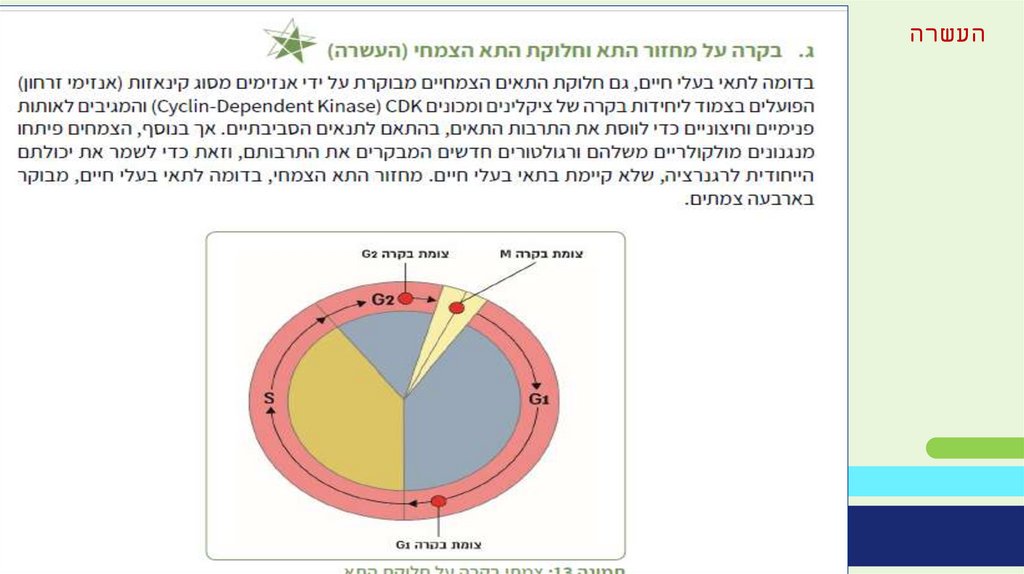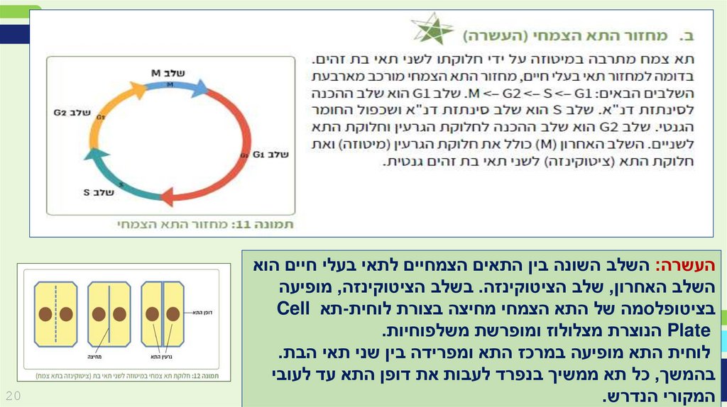 העשרה :השלב השונה בין התאים הצמחיים לתאי בעלי חיים הואהשלב האחרון ,שלב הציטוקינזה .בשלב הציטוקינזה ,מופיעה