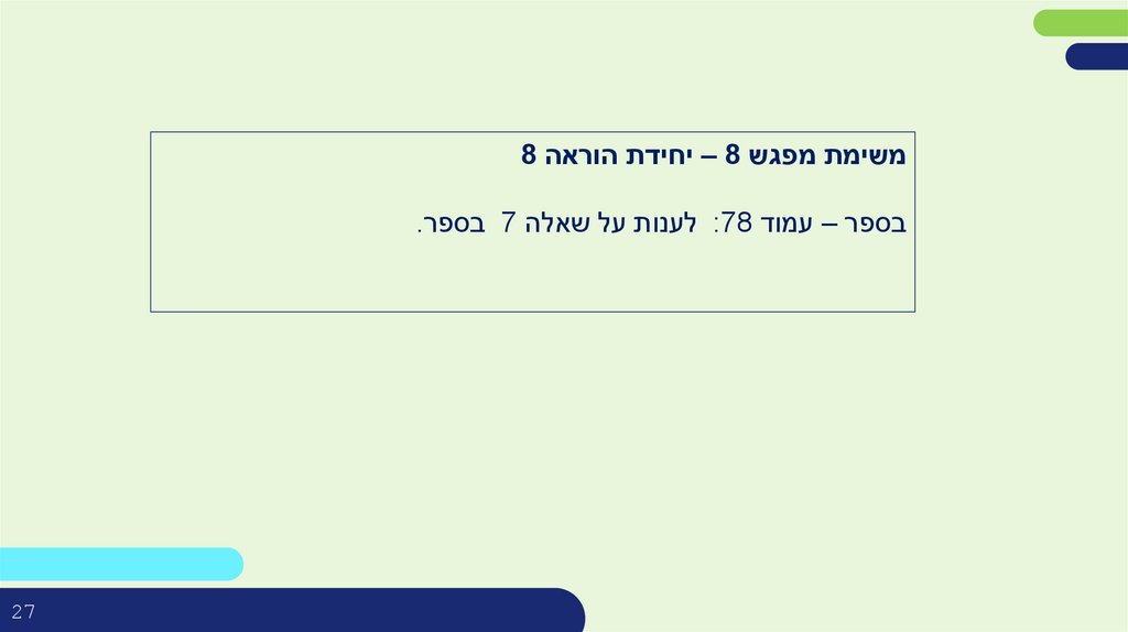 משימת מפגש – 8יחידת הוראה 8בספר – עמוד :78לענות על שאלה 7בספר.