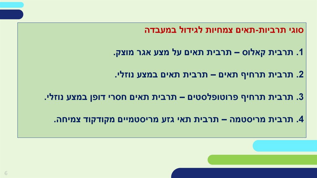 תרביות תאי צמחים -ראשי פרקים .1גידול תרביות תאי צמחים ,סוגי תרביות ומחזור התא