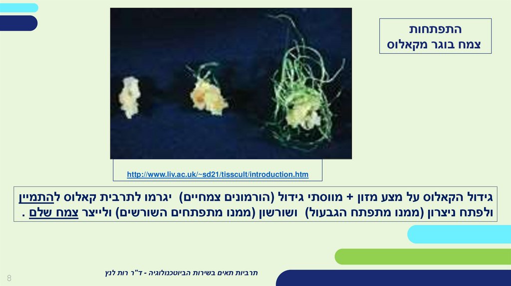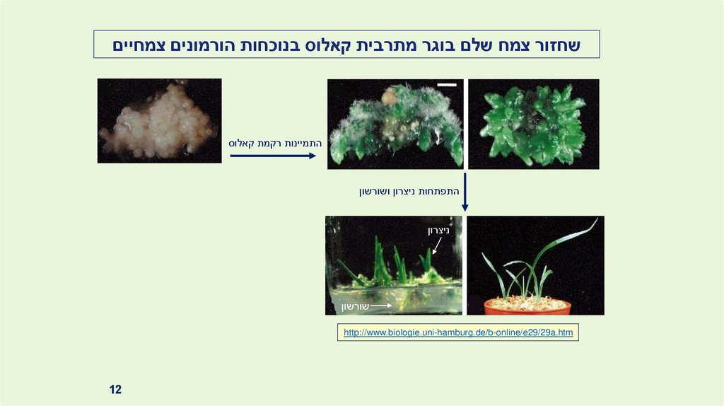 התמיינות בתאי הקאלוס ורגנרציה לרקמה סומטית בוגרת ,בתוספת הורמונים צמחיים