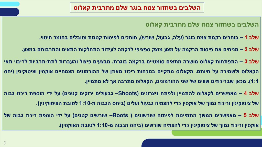 הקאלוס ולשמירה על חיותם .הקאלוס מתקיים בנוכחות ריכוז מאוזן של ההורמונים הצמחיים אוקסין וציטוקינין (יחס