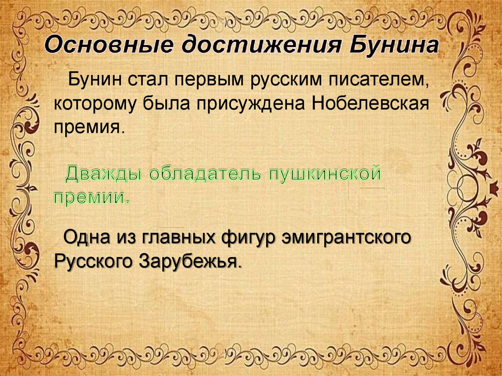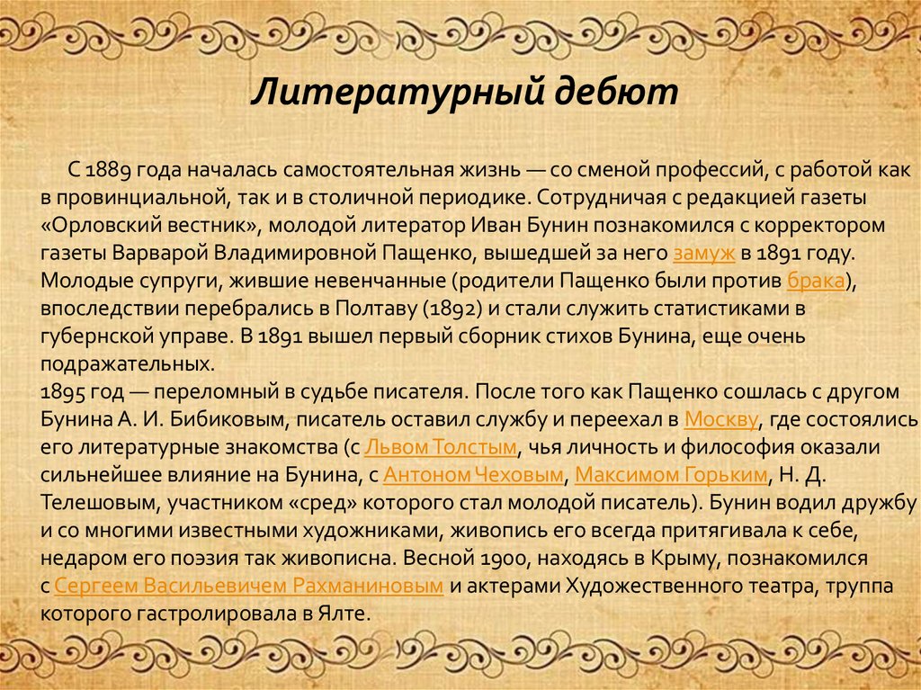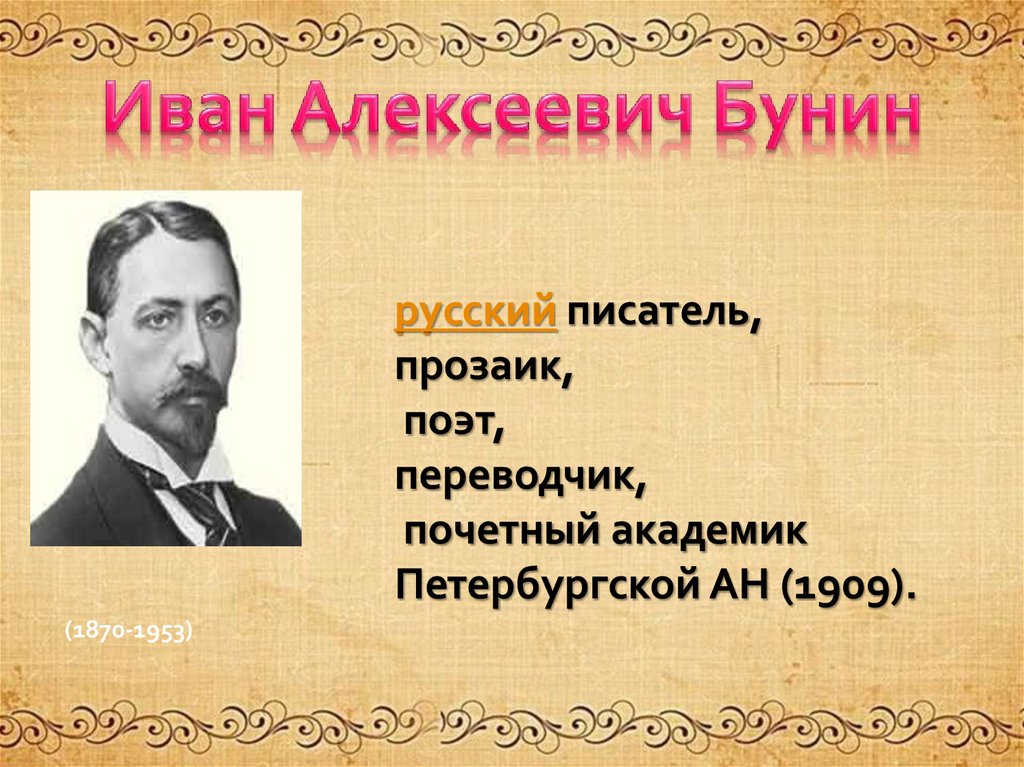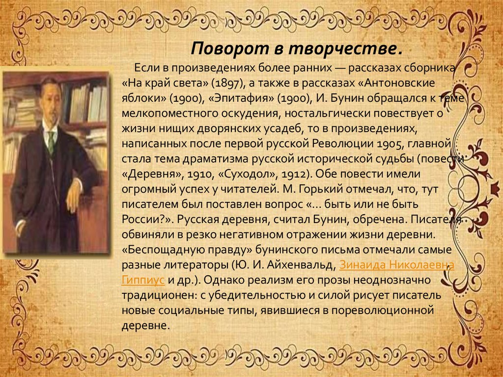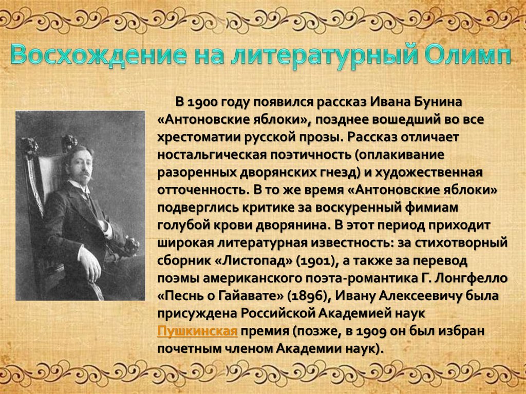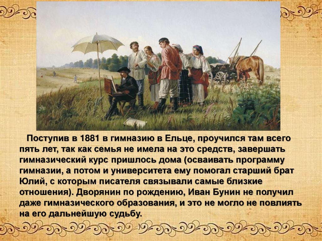 отношения). Дворянин по рождению, Иван Бунин не получил