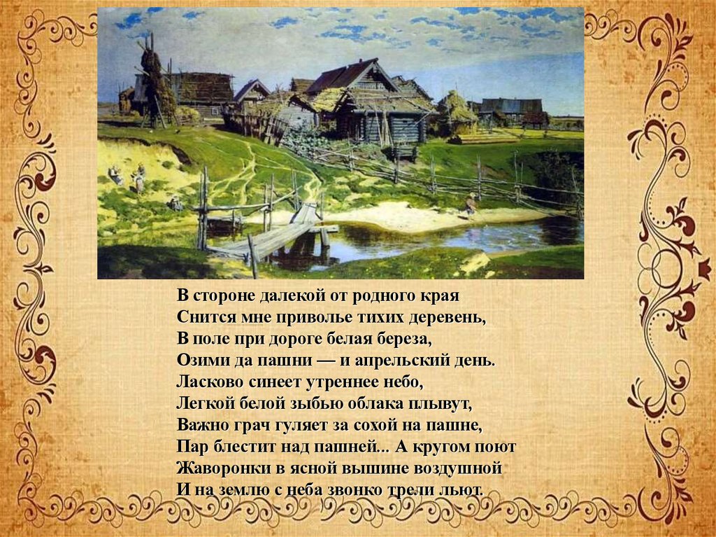 В стороне далекой от родного краяСнится мне приволье тихих деревень,