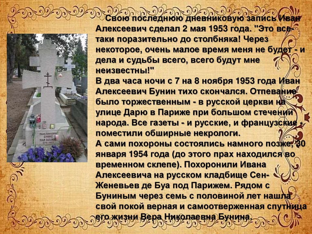 Алексеевич Бунин тихо скончался. Отпевание