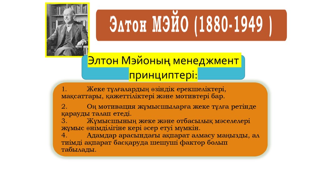 Элтон Мэйоның менеджментпринциптері: