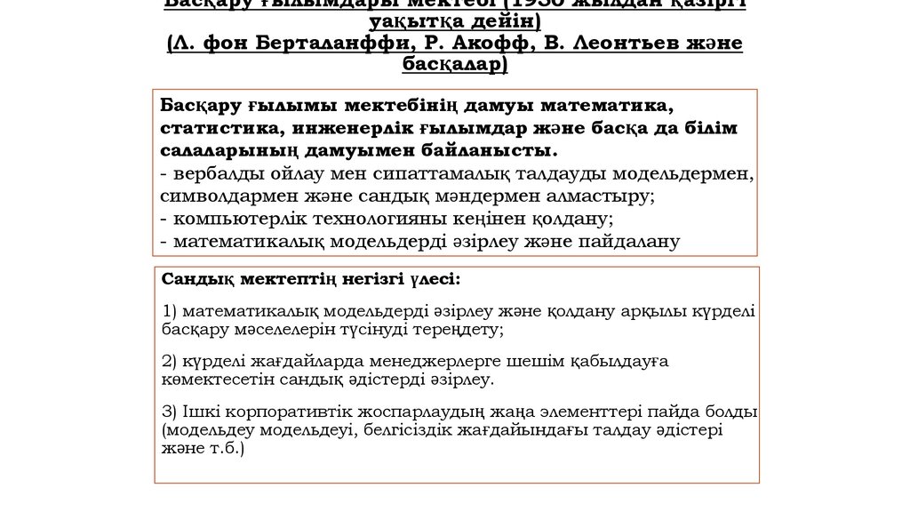 (Л. фон Берталанффи, Р. Акофф, В. Леонтьев және