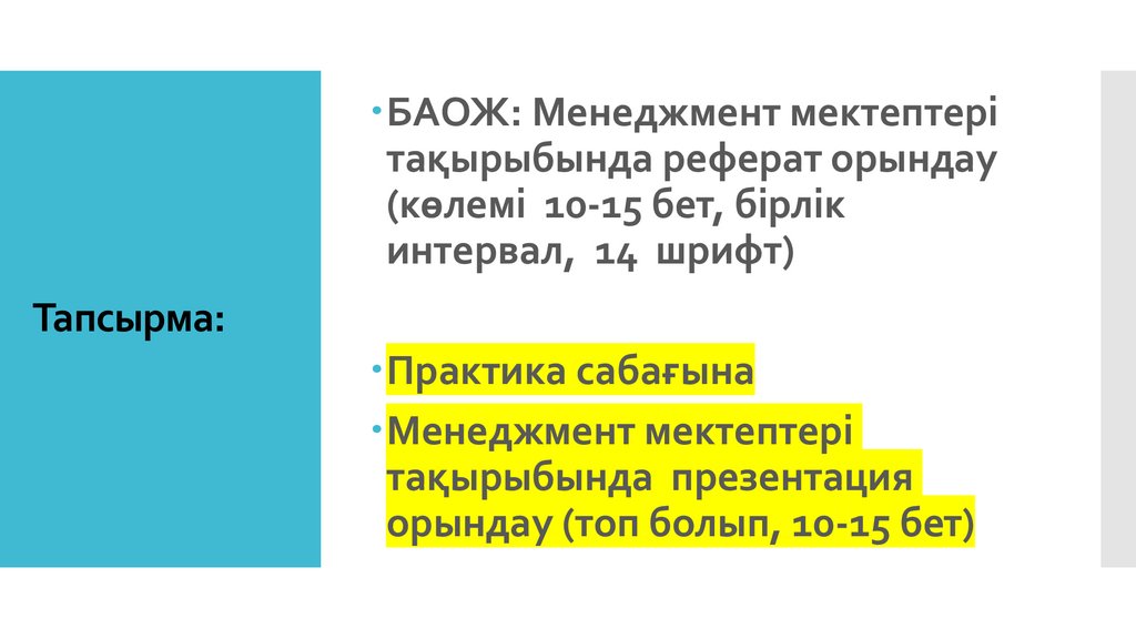 БАОЖ: Менеджмент мектептерітақырыбында реферат орындау