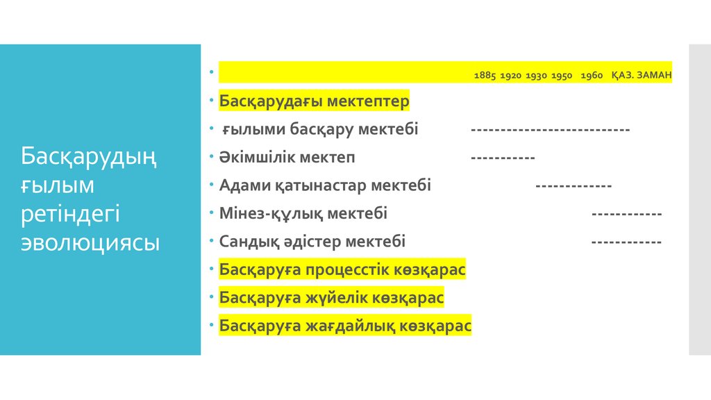 1885 1920 1930 1950 1960 ҚАЗ. ЗАМАНБасқарудағы мектептер