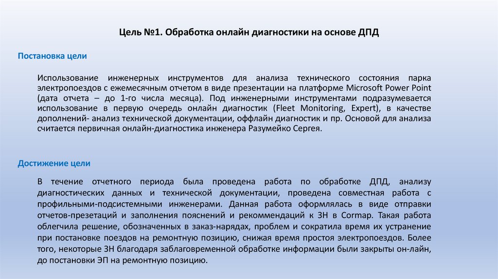 1. Цель №1. Обработка онлайн диагностики на основе ДПД