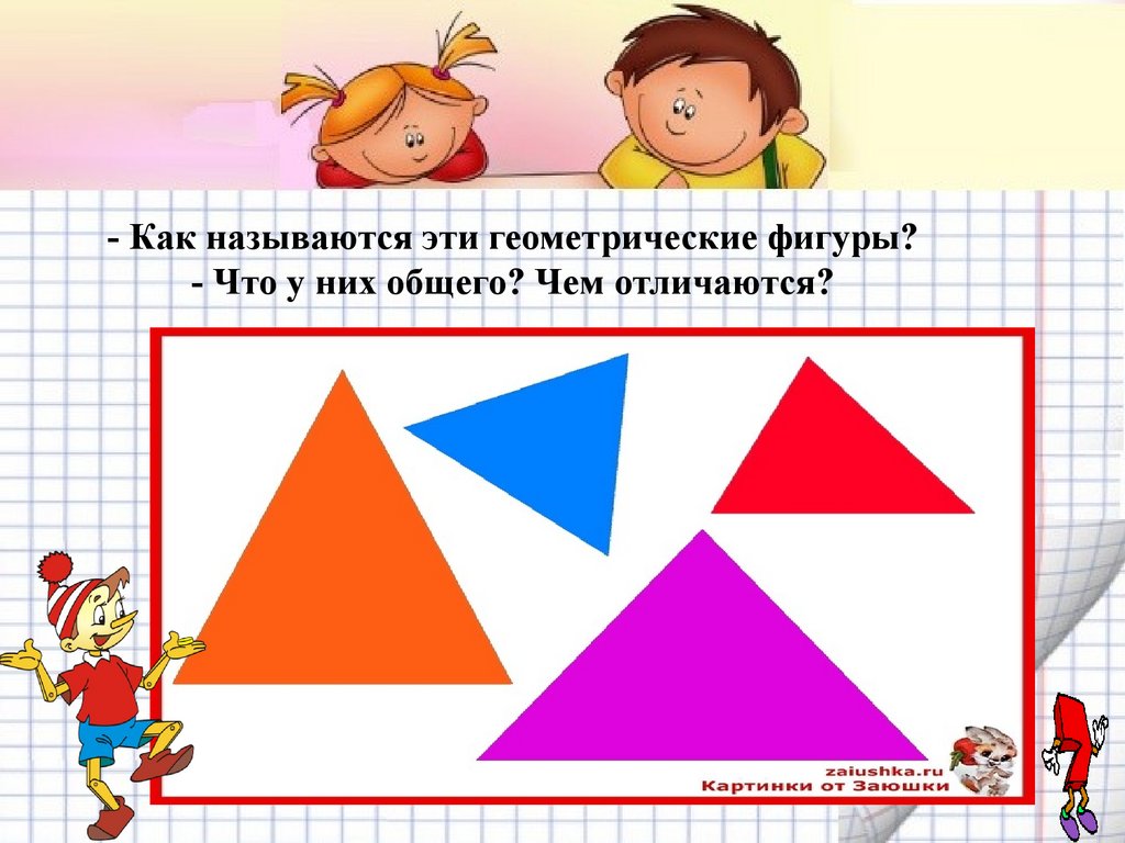 - Как называются эти геометрические фигуры?- Что у них общего? Чем отличаются?