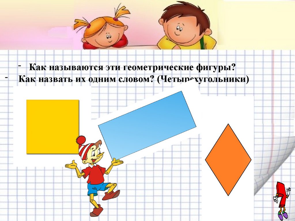 - Как называются эти геометрические фигуры?- Как назвать их одним словом? (Четырехугольники)