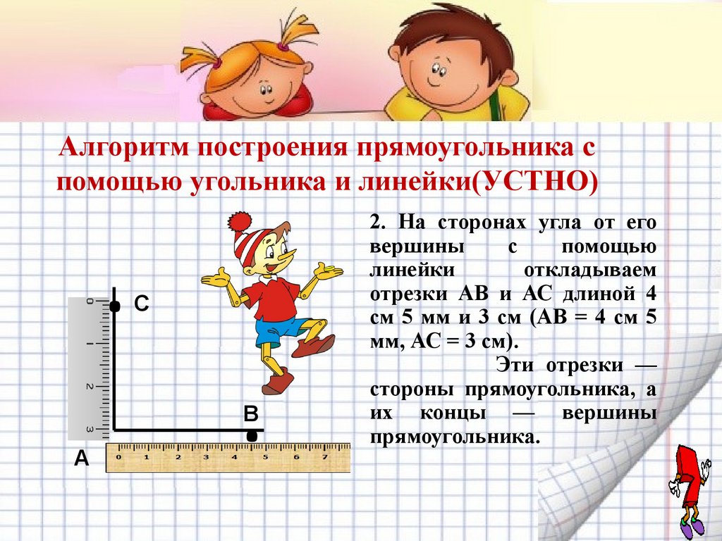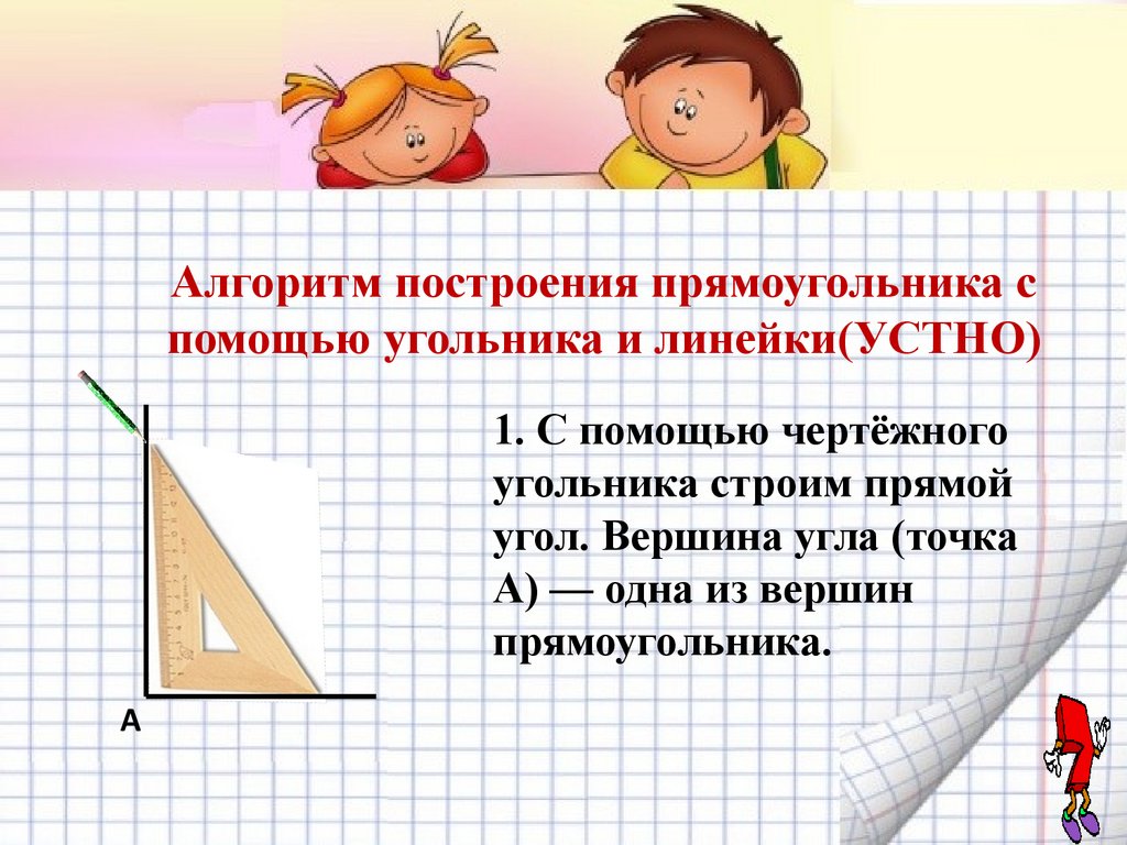 Алгоритм построения прямоугольника спомощью угольника и линейки(УСТНО)