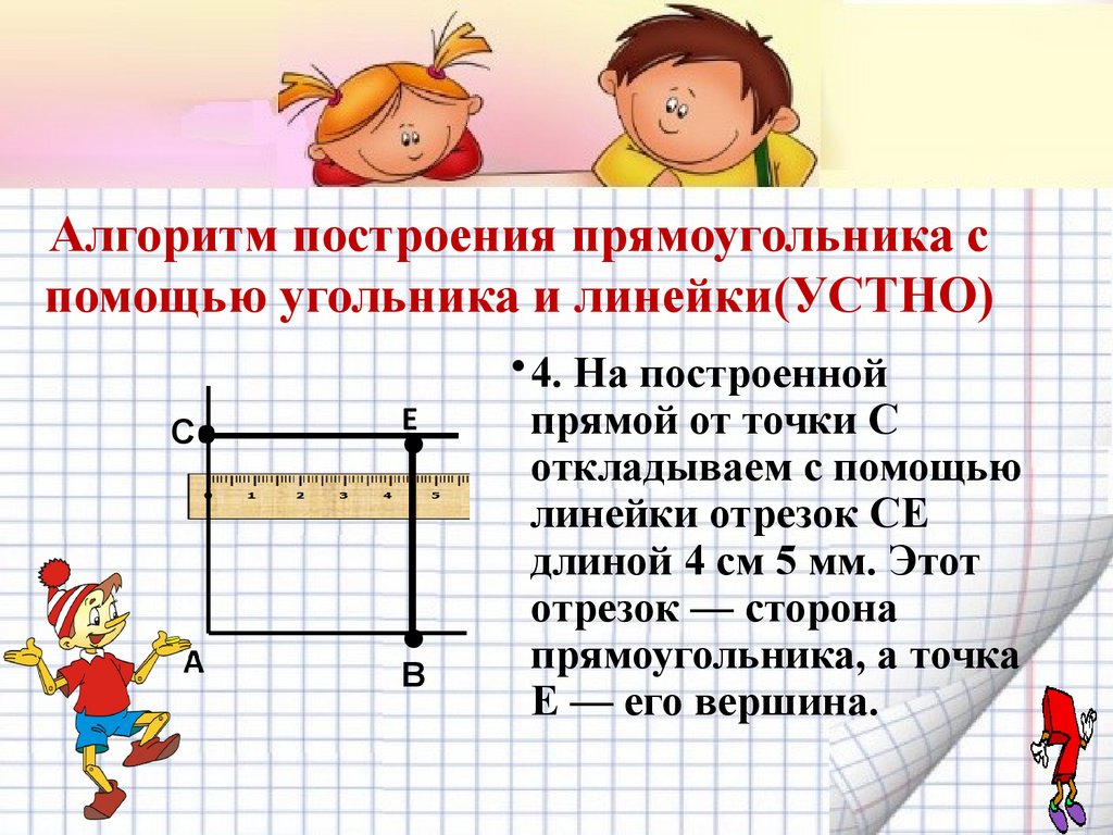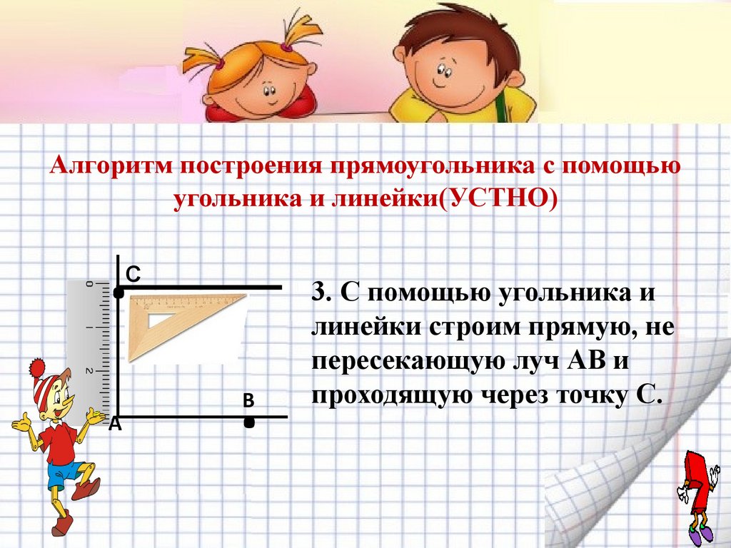 Алгоритм построения прямоугольника с помощьюугольника и линейки(УСТНО)