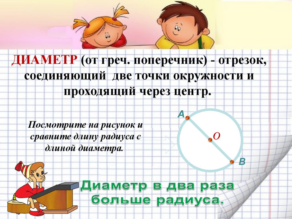 ДИАМЕТР (от греч. поперечник) - отрезок,соединяющий две точки окружности и