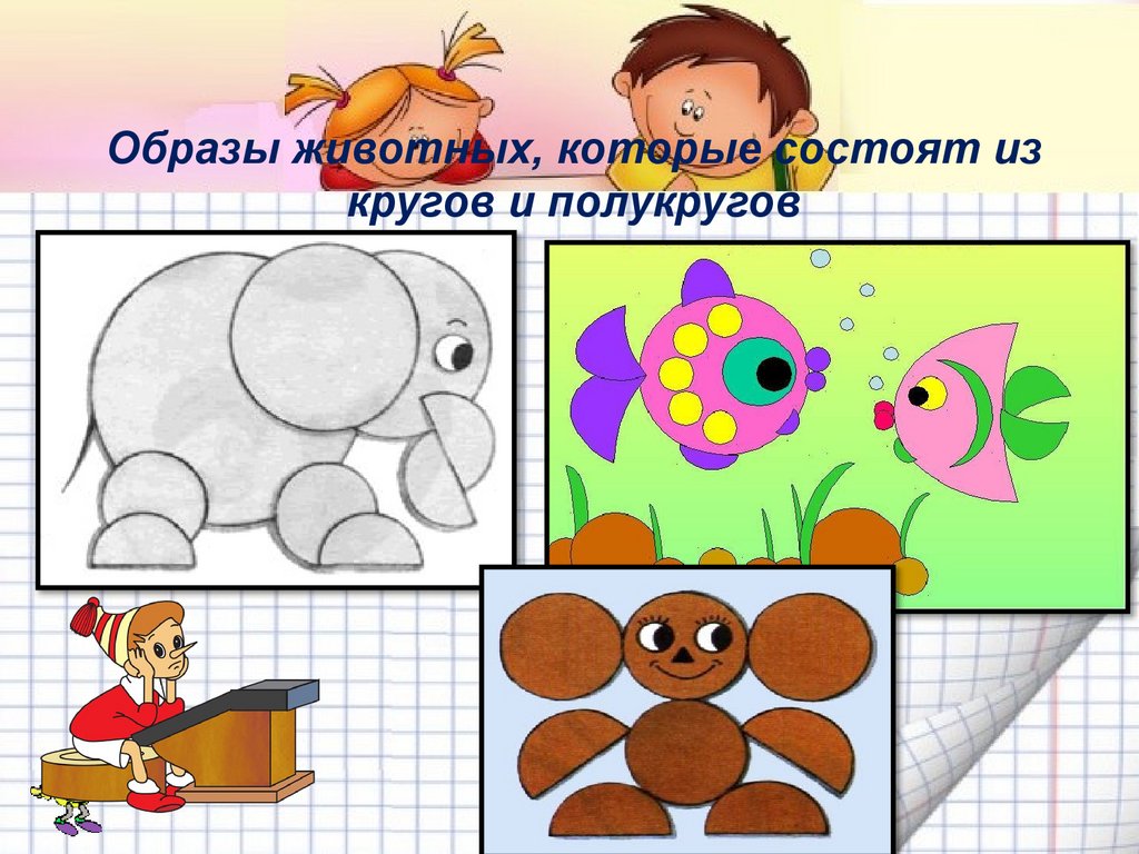 Образы животных, которые состоят изкругов и полукругов