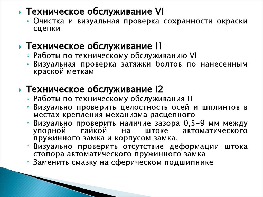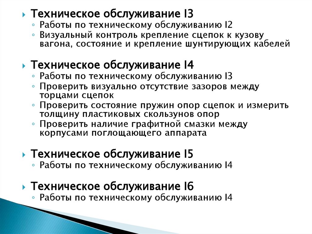 Техническое обслуживание I3◦ Работы по техническому обслуживанию I2