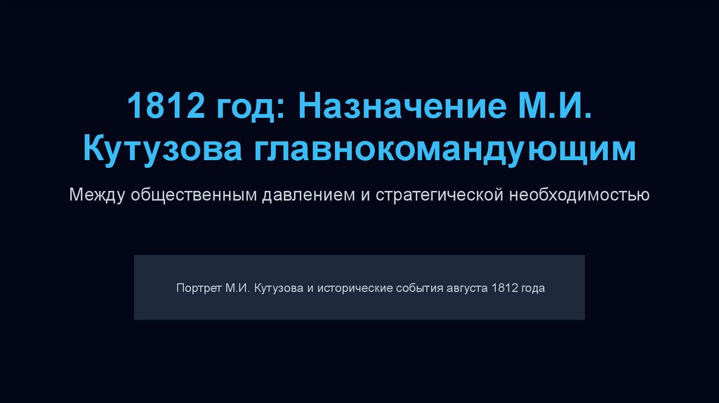 1812 год: Назначение М.И.Кутузова главнокомандующим