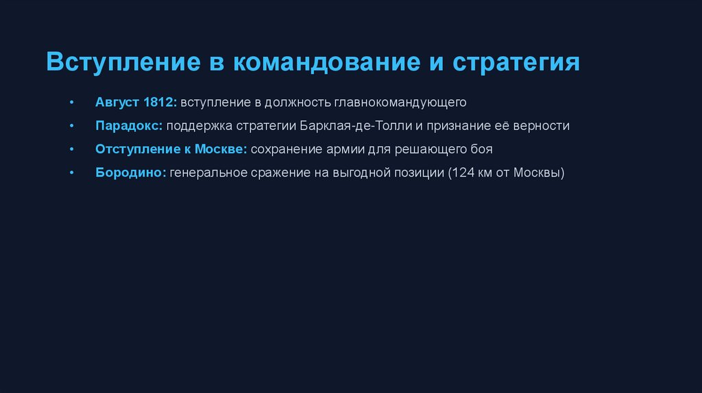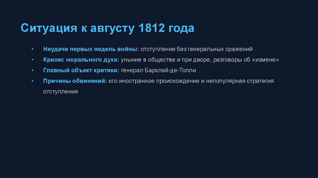 Вступление в командование и стратегияАвгуст 1812: вступление в должность главнокомандующего