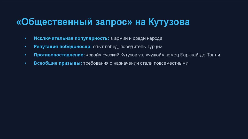 Противопоставление: «свой» русский Кутузов vs. «чужой» немец Барклай-де-Толли
