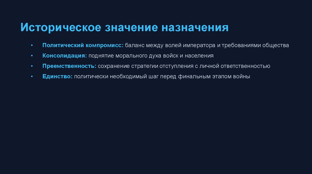 Историческое значение назначенияПолитический компромисс: баланс между волей императора и требованиями общества