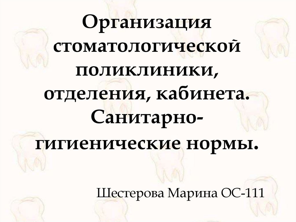 УИРС организация стом. поликлиники, отделения,кабинета, санитарно-гигиенические нормы