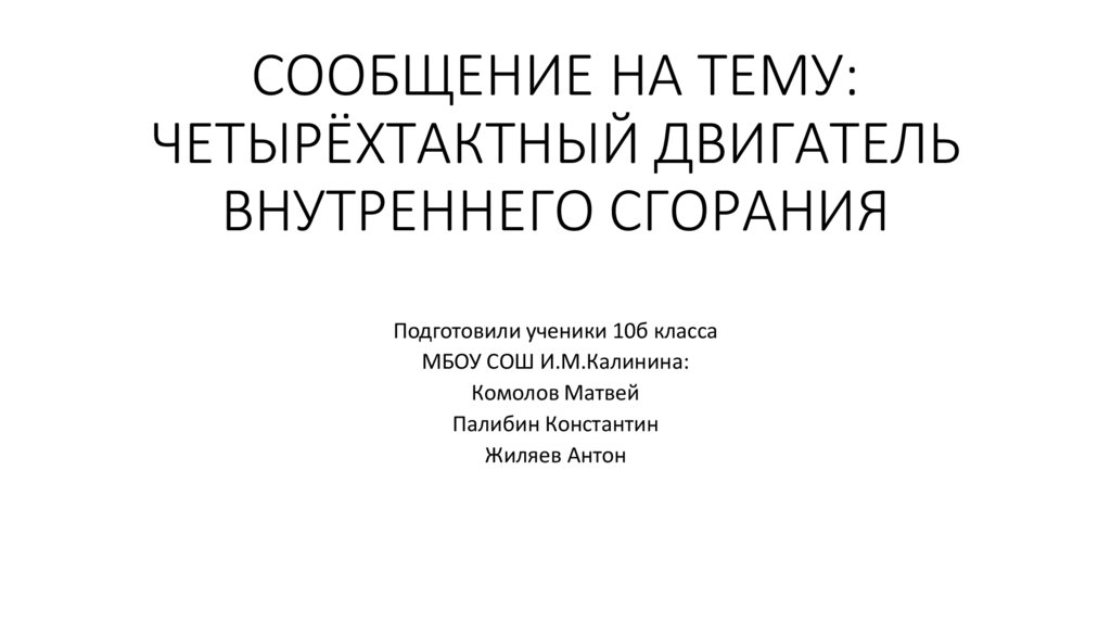 1. СООБЩЕНИЕ НА ТЕМУ: ЧЕТЫРЁХТАКТНЫЙ ДВИГАТЕЛЬ ВНУТРЕННЕГО СГОРАНИЯ