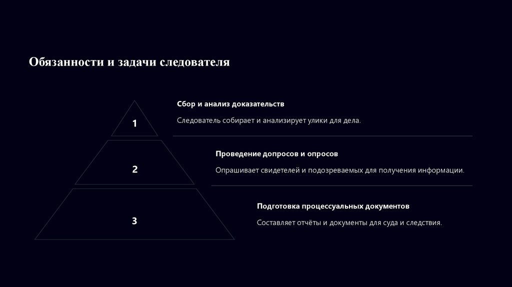 Обязанности и задачи следователяСбор и анализ доказательств