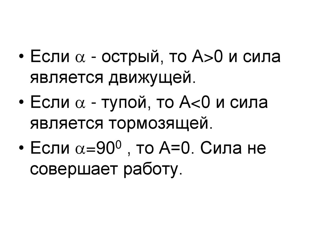 • Если =900 , то А=0. Сила не