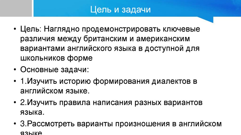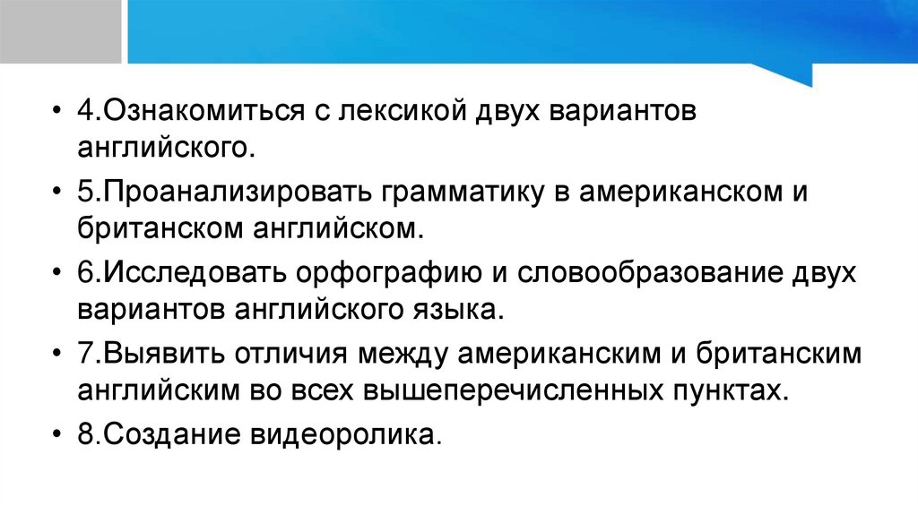 • 4.Ознакомиться с лексикой двух вариантованглийского.