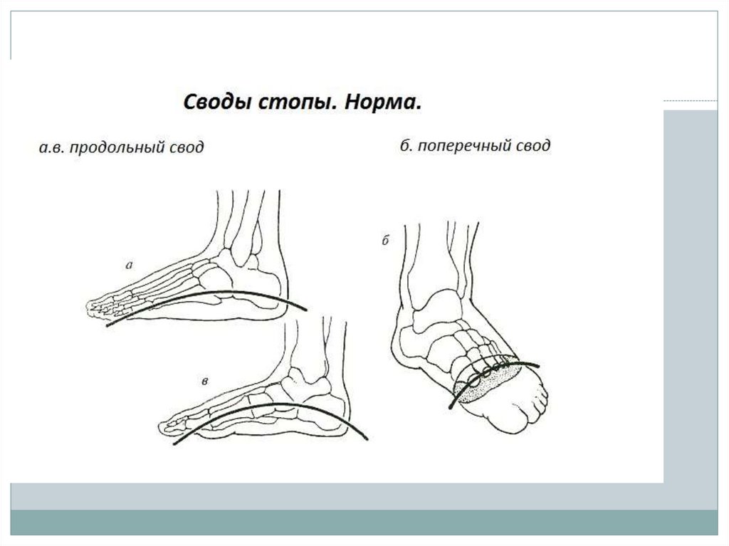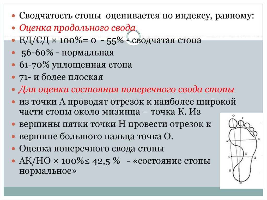 ЕД/СД × 100%= 0 - 55% - сводчатая стопа