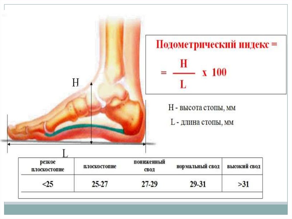 Сводчатость стопы оценивается по индексу, равному:Оценка продольного свода