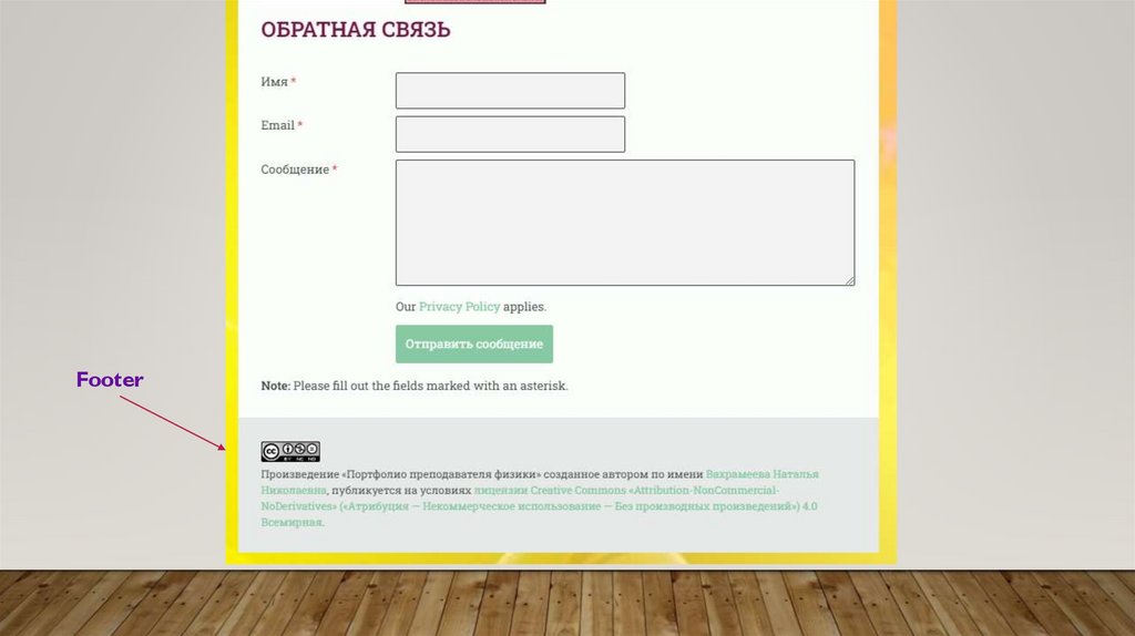 • Footer – подвал (логическое завершение страницы)