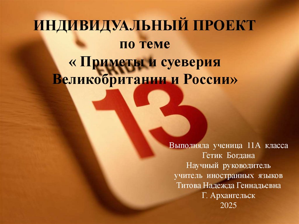 1. ИНДИВИДУАЛЬНЫЙ ПРОЕКТ по теме « Приметы и суеверия Великобритании и России»