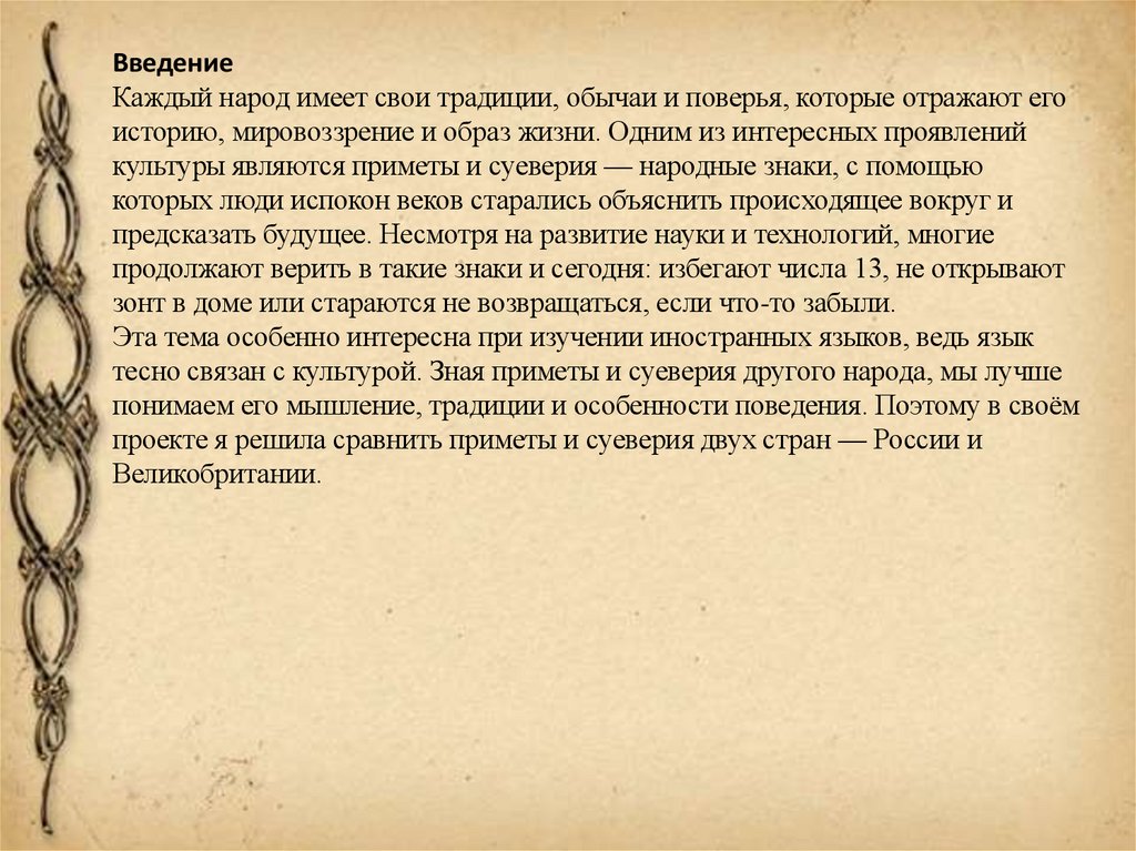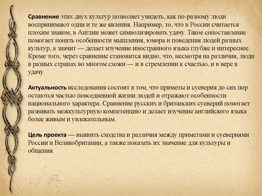 проекте я решила сравнить приметы и суеверия двух стран — России и