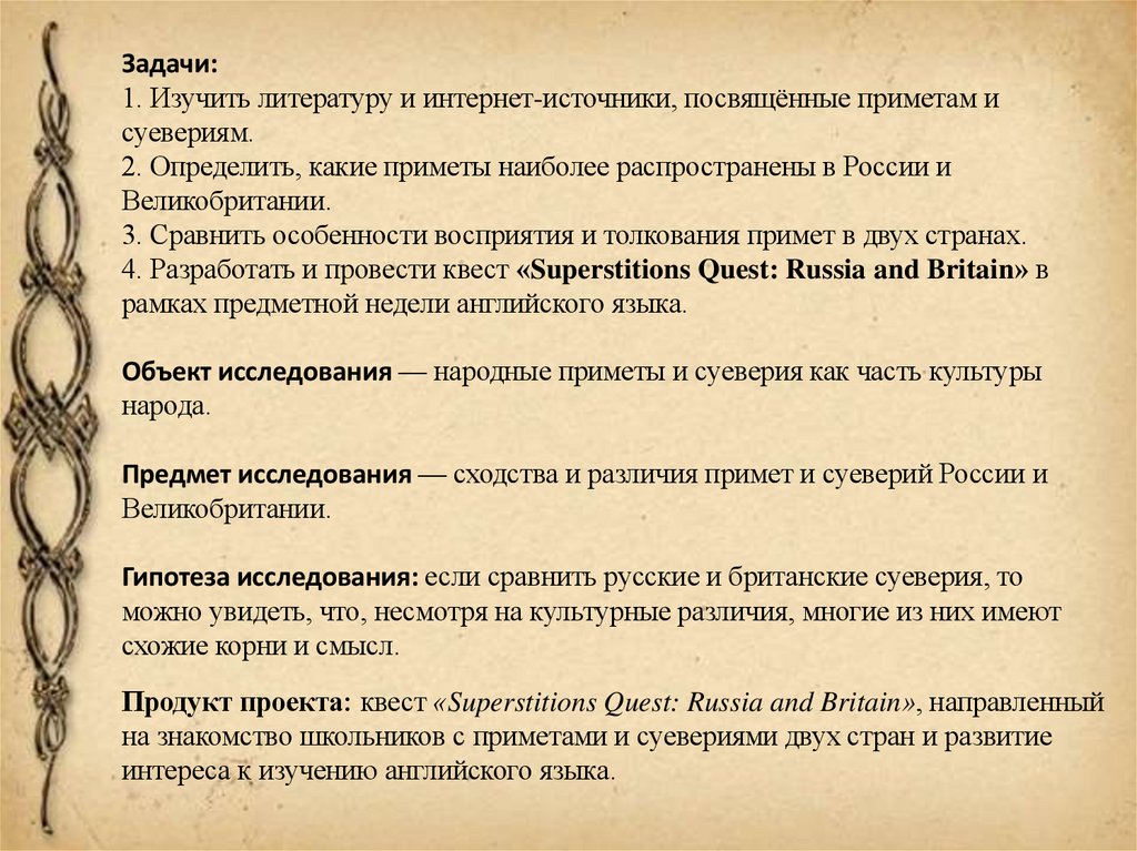Продукт проекта: квест «Superstitions Quest: Russia and Britain», направленный