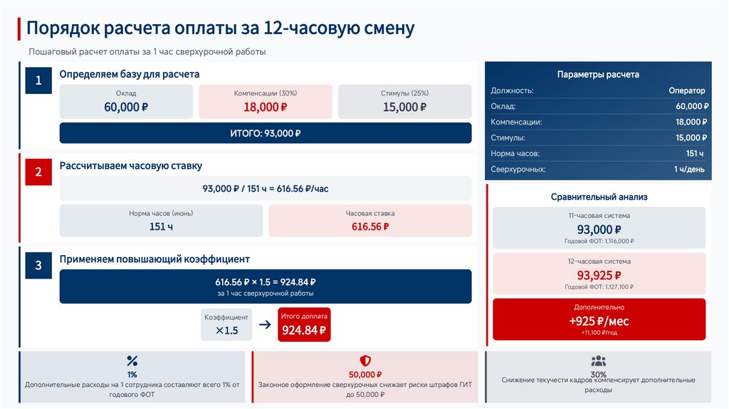 норм: определение порядка оплаты 12-часовой смены, расчет
