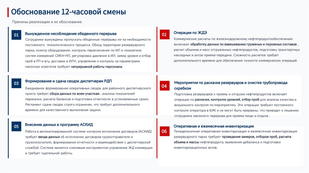 Обоснование 12-часовой сменыПричины реализации и их обоснование