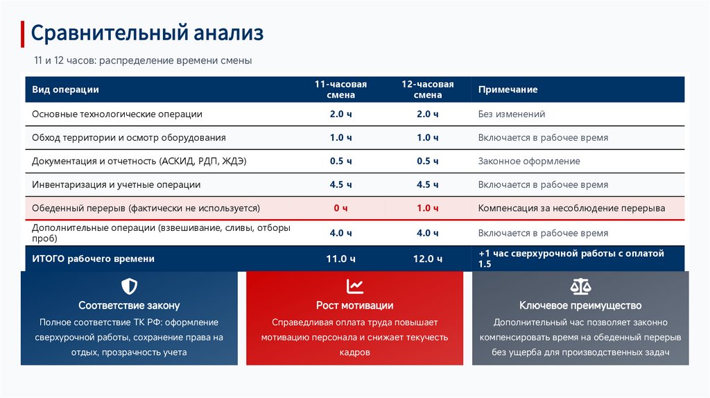 Переход на 12-часовую смену обеспечивает полное соответствие ТК РФ,