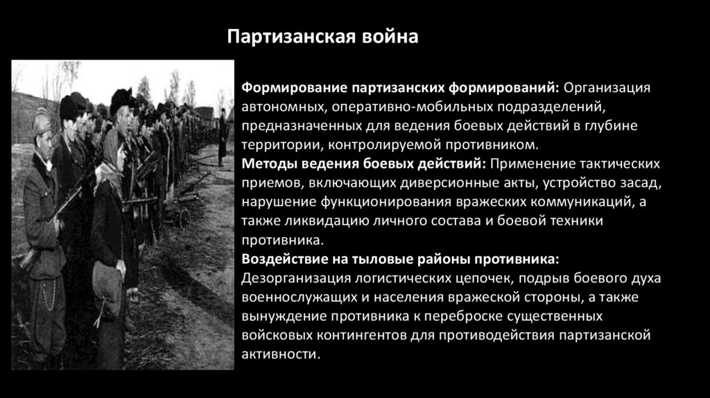 усиление роли авиации и партизанской войны,