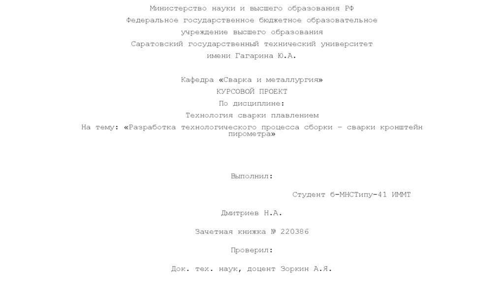 На тему: «Разработка технологического процесса сборки – сварки кронштейн
