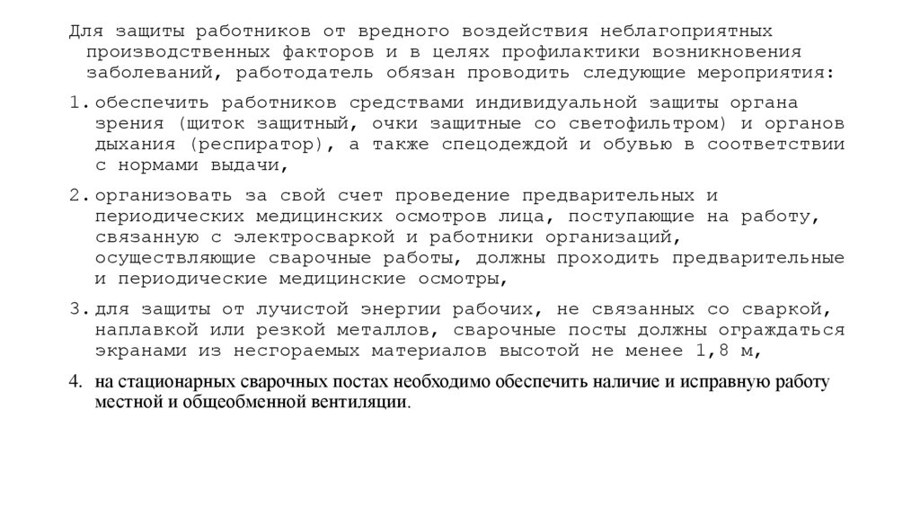 4. на стационарных сварочных постах необходимо обеспечить наличие и исправную работу