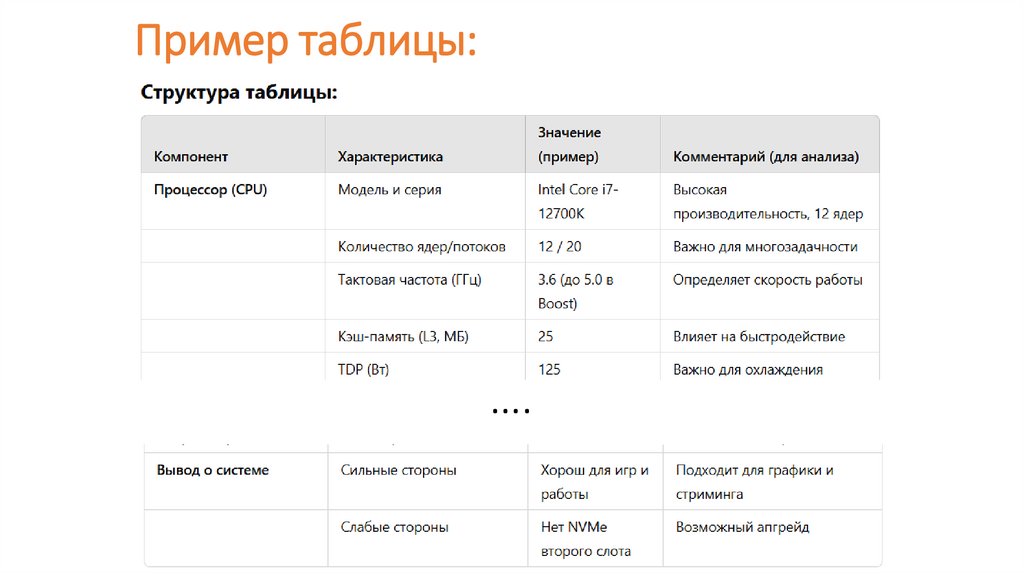 Пример таблицы: