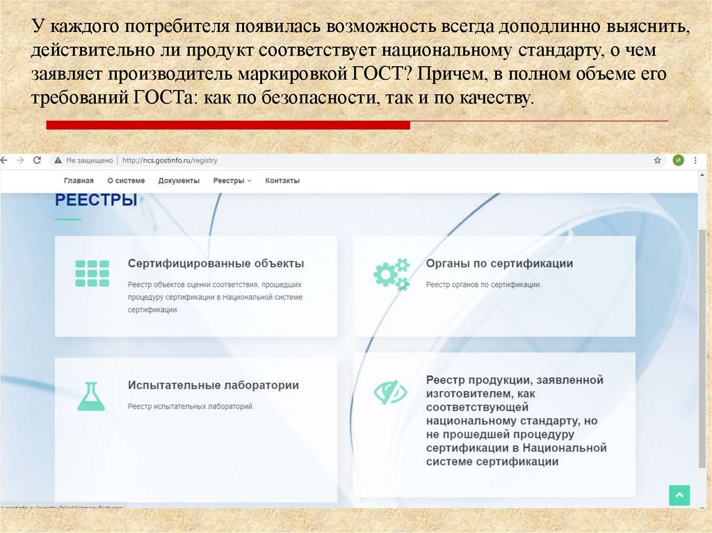 У каждого потребителя появилась возможность всегда доподлинно выяснить,действительно ли продукт соответствует национальному стандарту, о чем