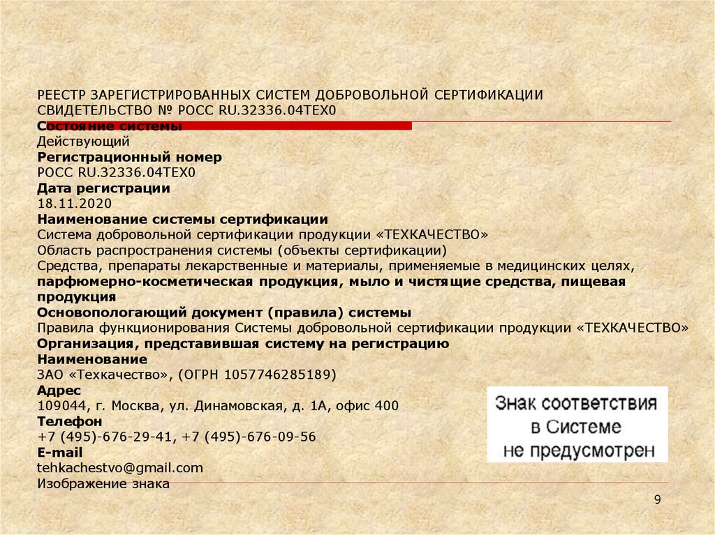 сертификат соответствия.