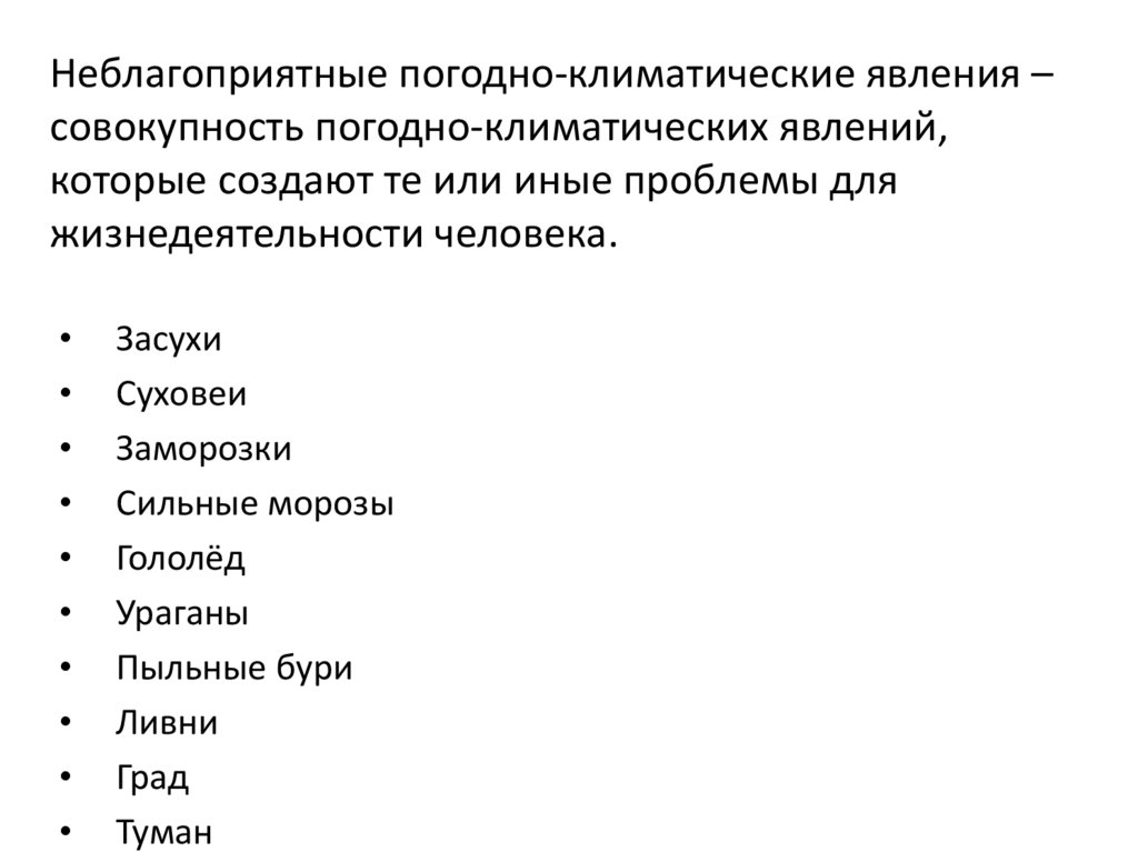 Неблагоприятные погодно-климатические явления –совокупность погодно-климатических явлений,