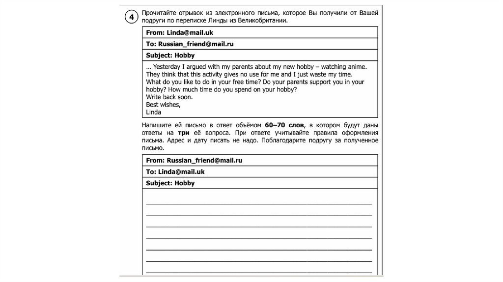 Пример написания письма:
