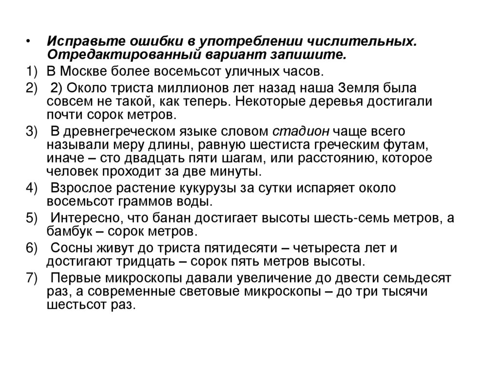 Исправьте ошибки в употреблении числительных.